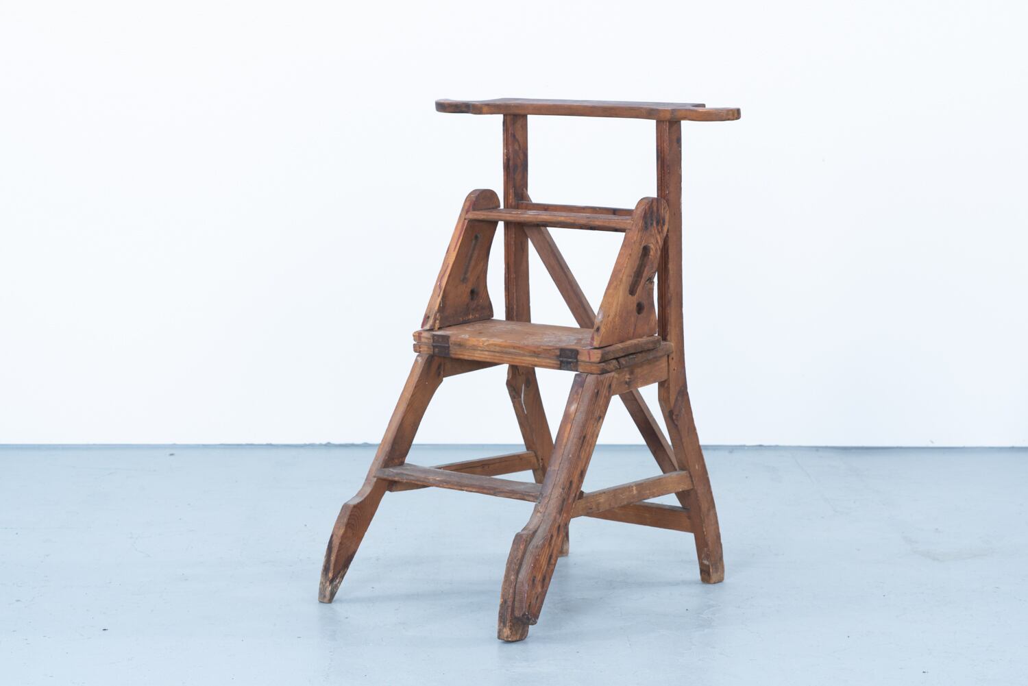 かつて、高い本棚に並んだ愛読書に手を伸ばすために作られた、知恵の詰まった椅子がありました。スウェーデンで18世紀から19世紀頃に使われていた、パイン材のライブラリーチェアです。