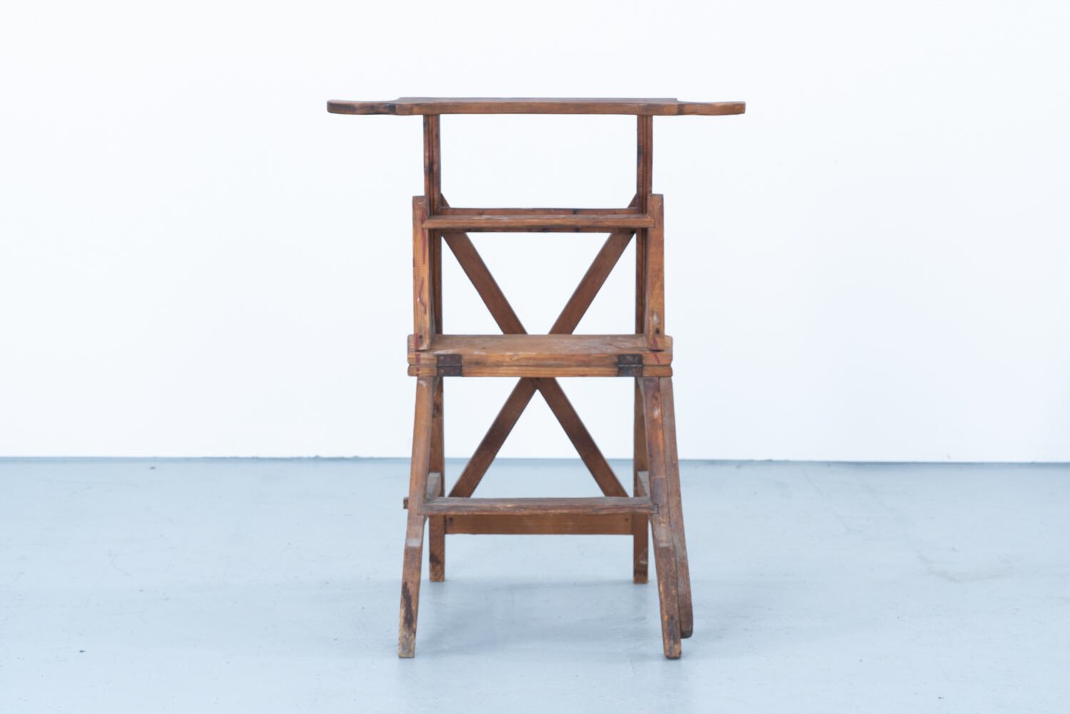 一見すると、どっしりと落ち着いた佇まいの木の椅子ですが、実は「階段(ステップ)」としての役割も隠し持っています。お部屋の隅で静かに暮らしを支え、高いところの電球を替えたり、棚の奥の品物を取り出したり。必要なときにそっと手を貸してくれる、そんな健気な道具です。