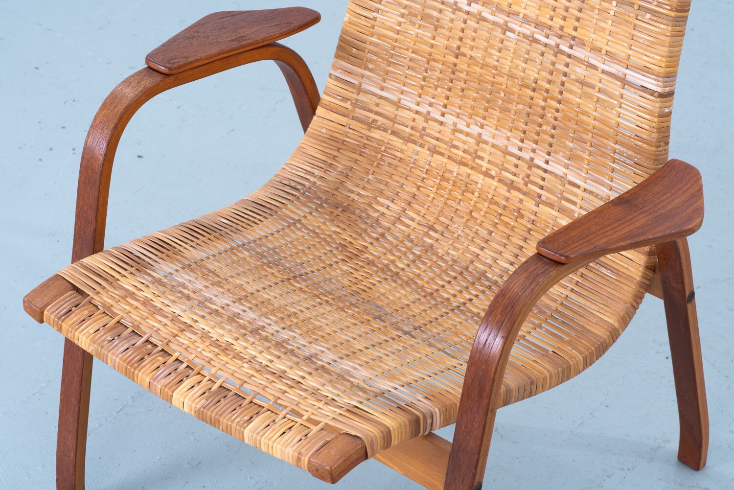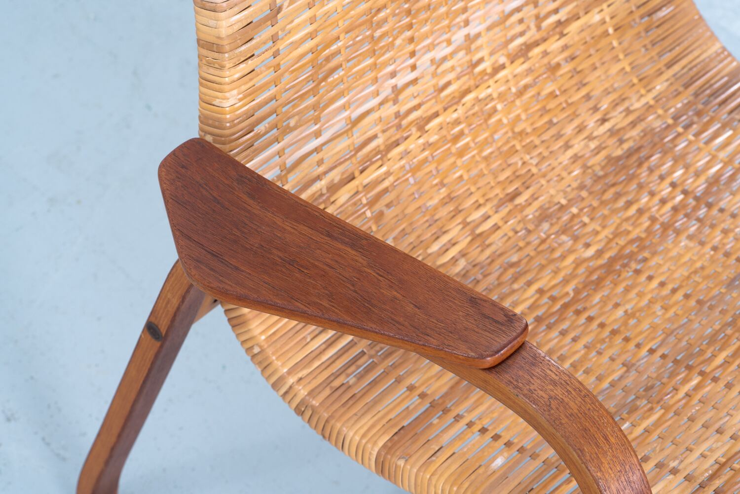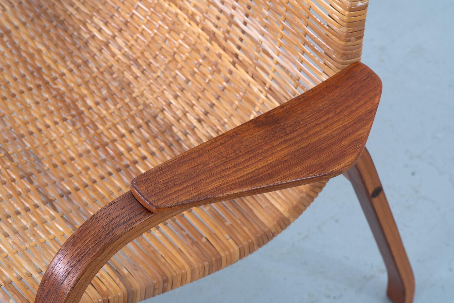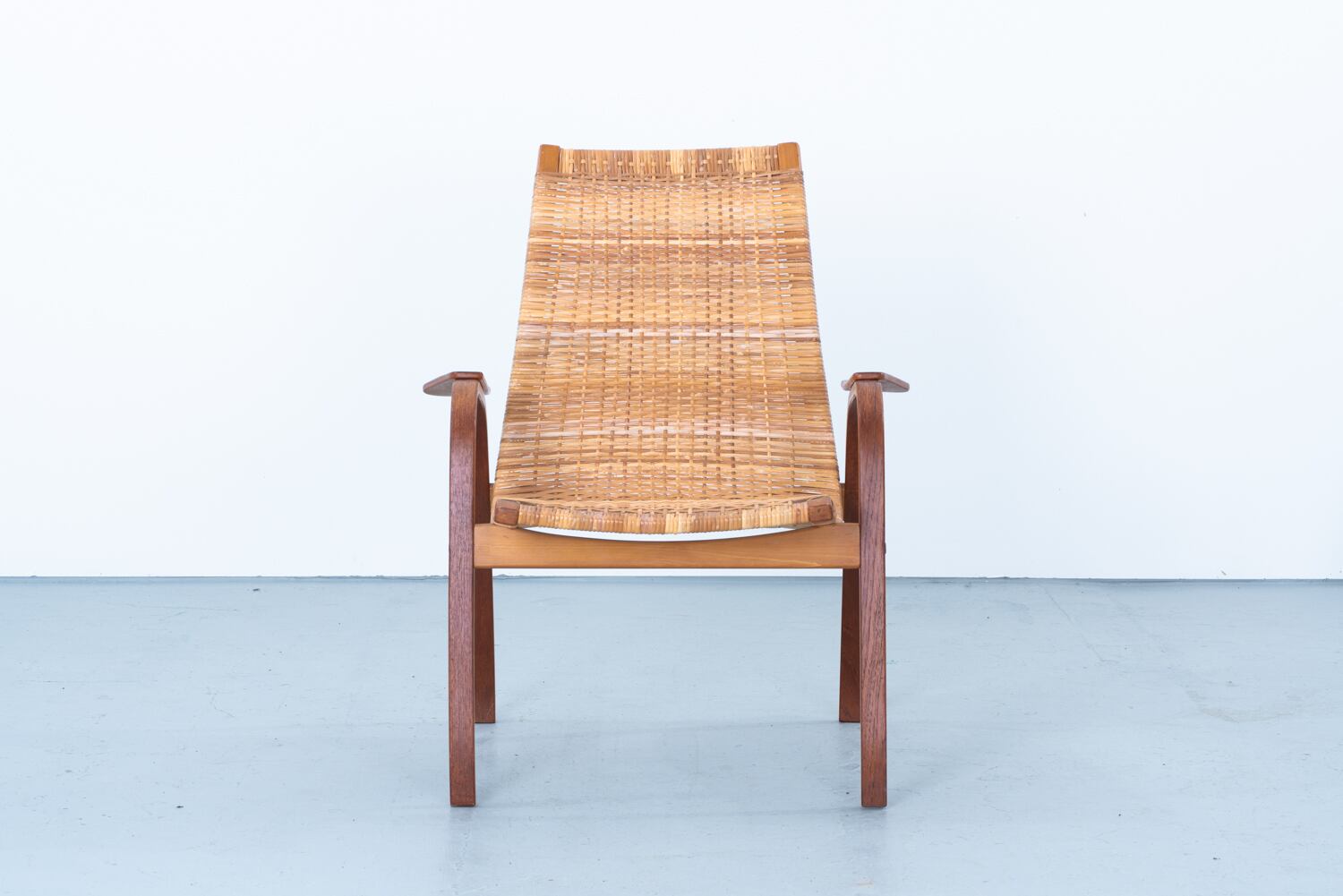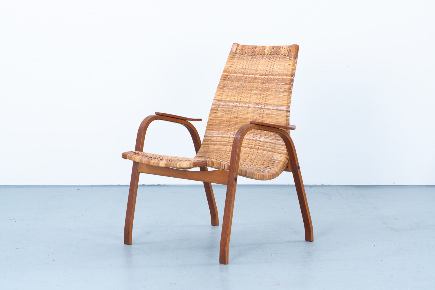 背筋をすうっとなぞるような、あまりに潔く、美しい曲線。スウェーデンを代表する巨匠、ユンヴェ・エクストロームが手がけたイージーチェア「Kurva」を眺めていると、そのチークの木肌に、北欧の澄んだ空気そのものが編み込まれているような気がします。