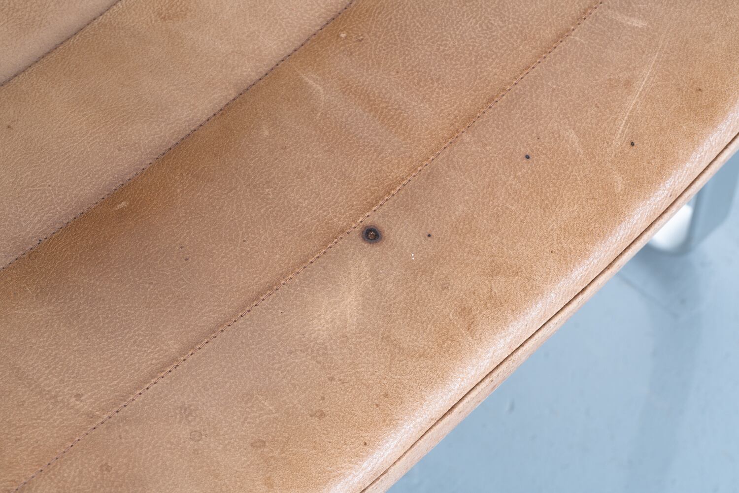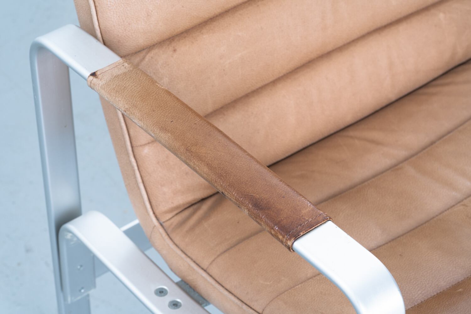 年月を経て、使い手の時間を吸い込んだレザーのパティーナ(経年変化)は、ヴィンテージでしか到達し得ない深み。アーム部分に巻かれたレザーのディテール一つとっても、そこにはインダストリアルな合理性と、北欧のクラフトマンシップが一分の隙もなく同居しています。