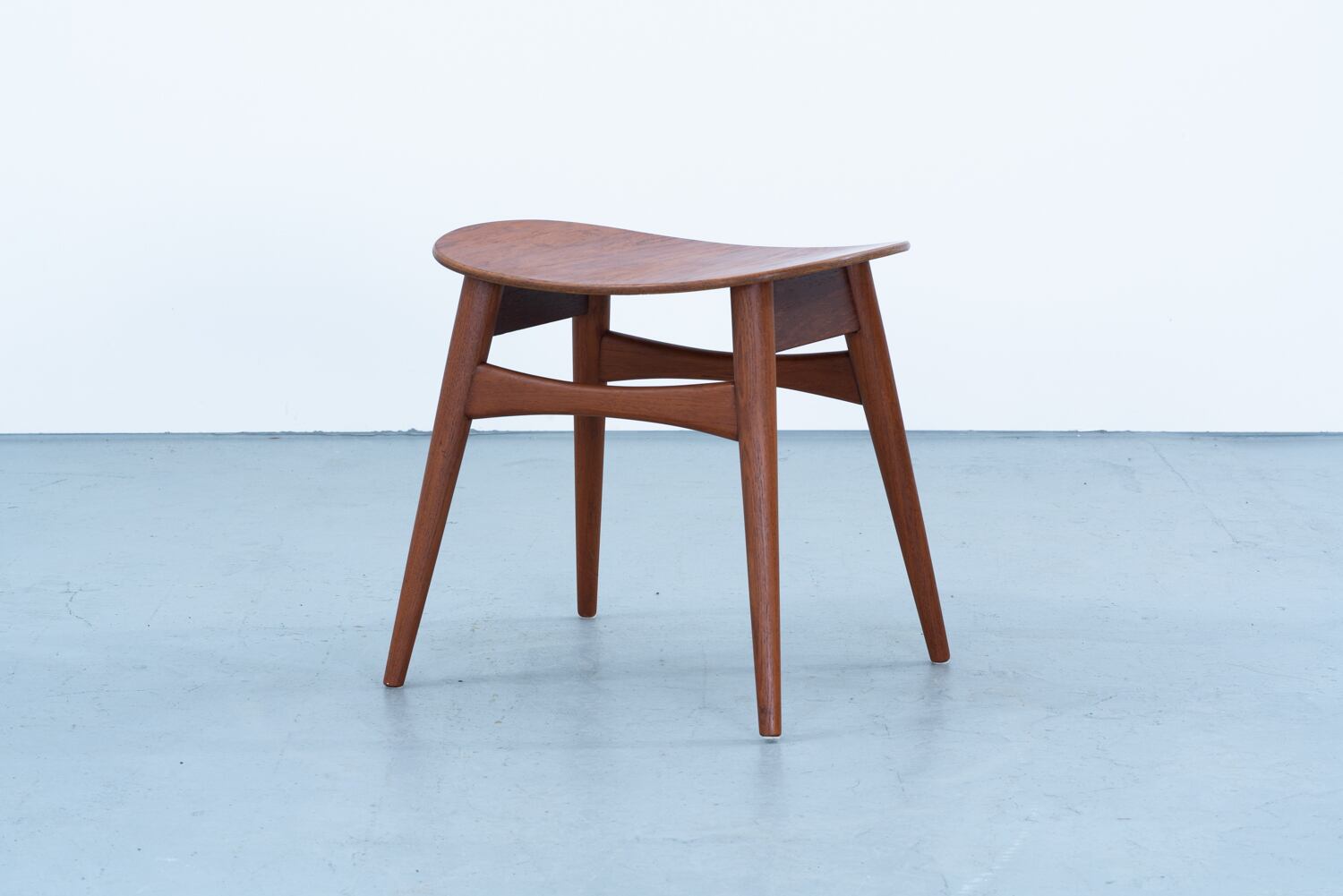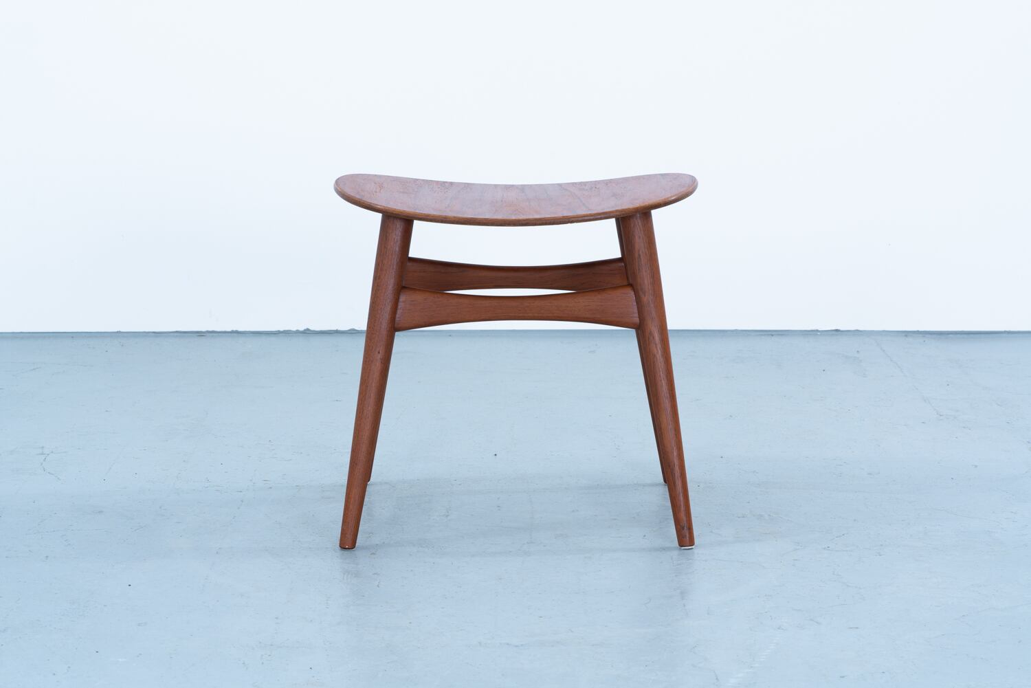 甘い蜜を閉じ込めたような、深く、とろけるような琥珀色の肌合い。1960年代、デンマークのどこかの工房で生まれたこのスツールを眺めていると、その名もなき誠実な佇まいに、胸の奥がじんわりと温かくなるのを感じます。